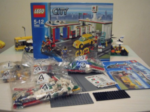 從網上買回來, 盒子也不小, 內有 4 包 積木包, 油站大地板一塊, 2 塊小地板, Sticker 一張及說明書兩本